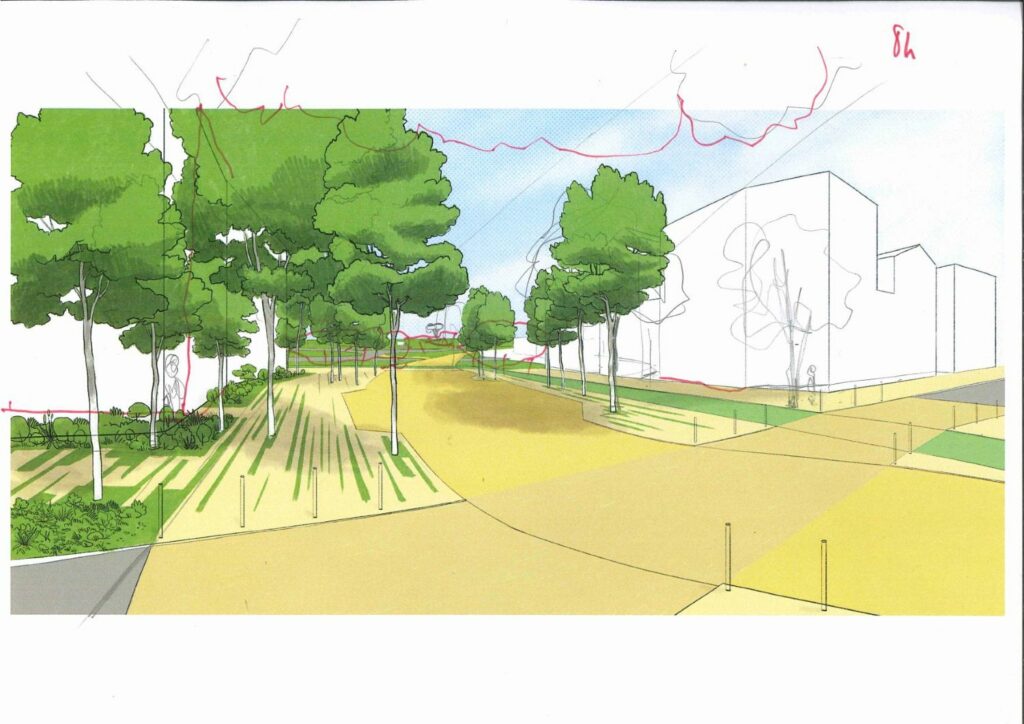 Chaque image appuie quelques propositions identifiées notamment le choix des espèces paysagères mais aussi les usages et circulations imaginées.