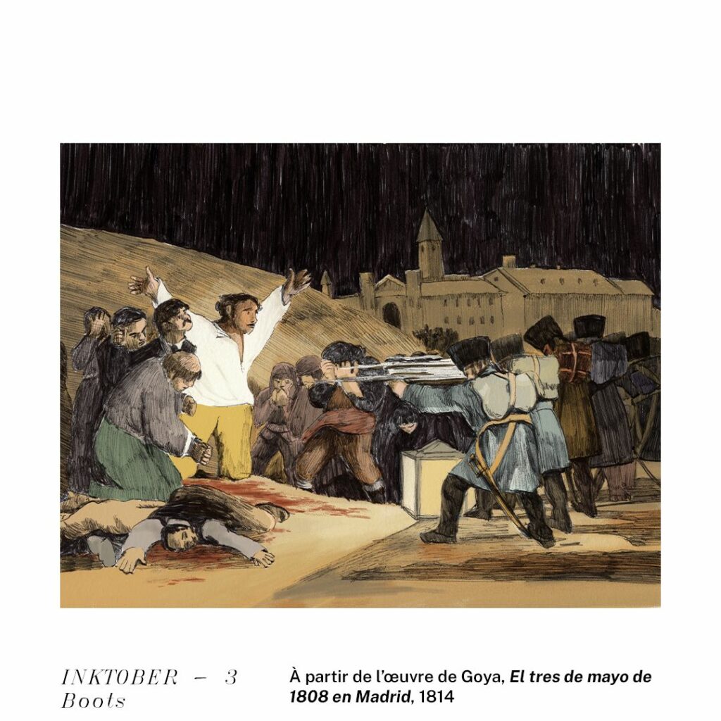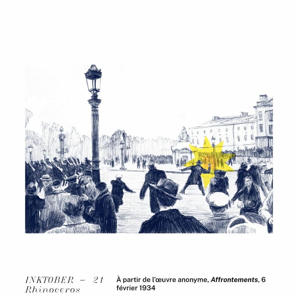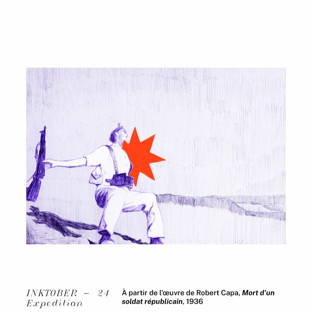 Le défi Inktober proposer aux artistes de réaliser un dessin par jour lié à un thème durant le mois d’octobre, initialement à l’encre noire. Pour Inktober 2022 j’avais choisi de réaliser un hommage à Jacques Tardi et pour Inktober 2023 j’avais décidé de détourner la proposition en utilisant comme outil artistique le stylo BIC noir sur un format très petit (environ 4×4 cm).