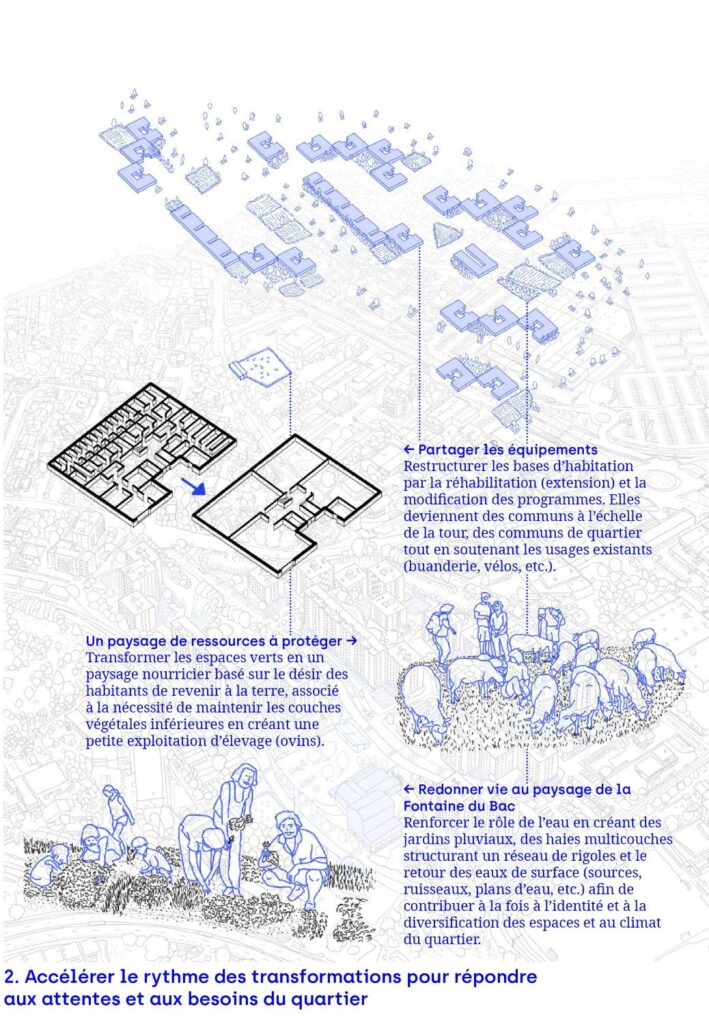Nous choisissons de prendre les devants, d’abord pour éviter de réduire les phénomènes complexes de l’urgence à leurs composantes les plus simples (où le logement et la terre sont destinés à être réduits à des biens d’équipement, où l’économie de la construction détruit le territoire), mais surtout pour éviter de considérer ces derniers comme plus fondamentaux que les phénomènes observables dans un quartier. Il s’agit d’embrasser la complexité du monde qui le constitue et d’entrer en résistance par l’action collective.